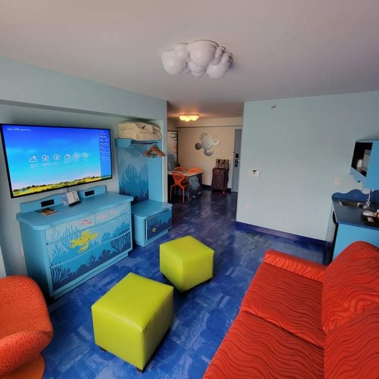 For the first part of my week while I was in the parks, I stayed on site at the Pop Century hotel, and had 2-day park hopper tickets. I was in the parks from opening to closing, and we walked well over 9 miles each day! On Thursday I transferred hotels to Art of Animation. The Nemo family suite is gold by the way, and would be a good option should you pick a park trip.