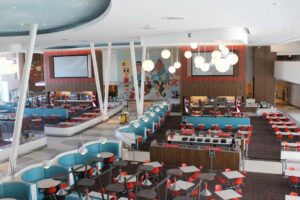 For dining options your family can pick 3 dining locations. Bayliner Diner food court offers selections wraps, sandwiches, international meals, pizza, burger, salad, dessert and frozen yogurt. The options are endless. They also offer a grab and go area if you are in a rush to get to the pool or park. The Hideaway Bar and Grill offers adult beverages, wine by the glass or bottle, cocktails as well as smoothies and mocktails for the kids. They also serve nachos and burgers as well as other fast food options. Galaxy