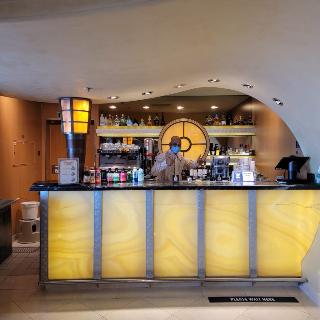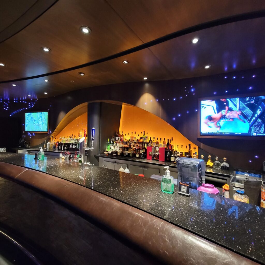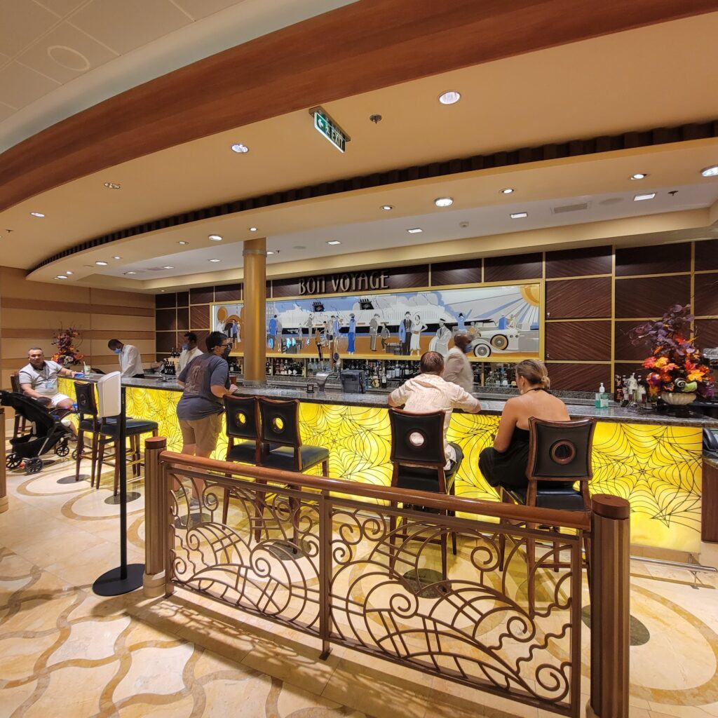 When you first walk on the ship and get introduced (who doesn’t love that?) the first bar you will see will most likely be Bon Voyage. Located in the grand atrium, it’s the perfect spot to grab that tropical cocktail and make a toast to your upcoming adventure.