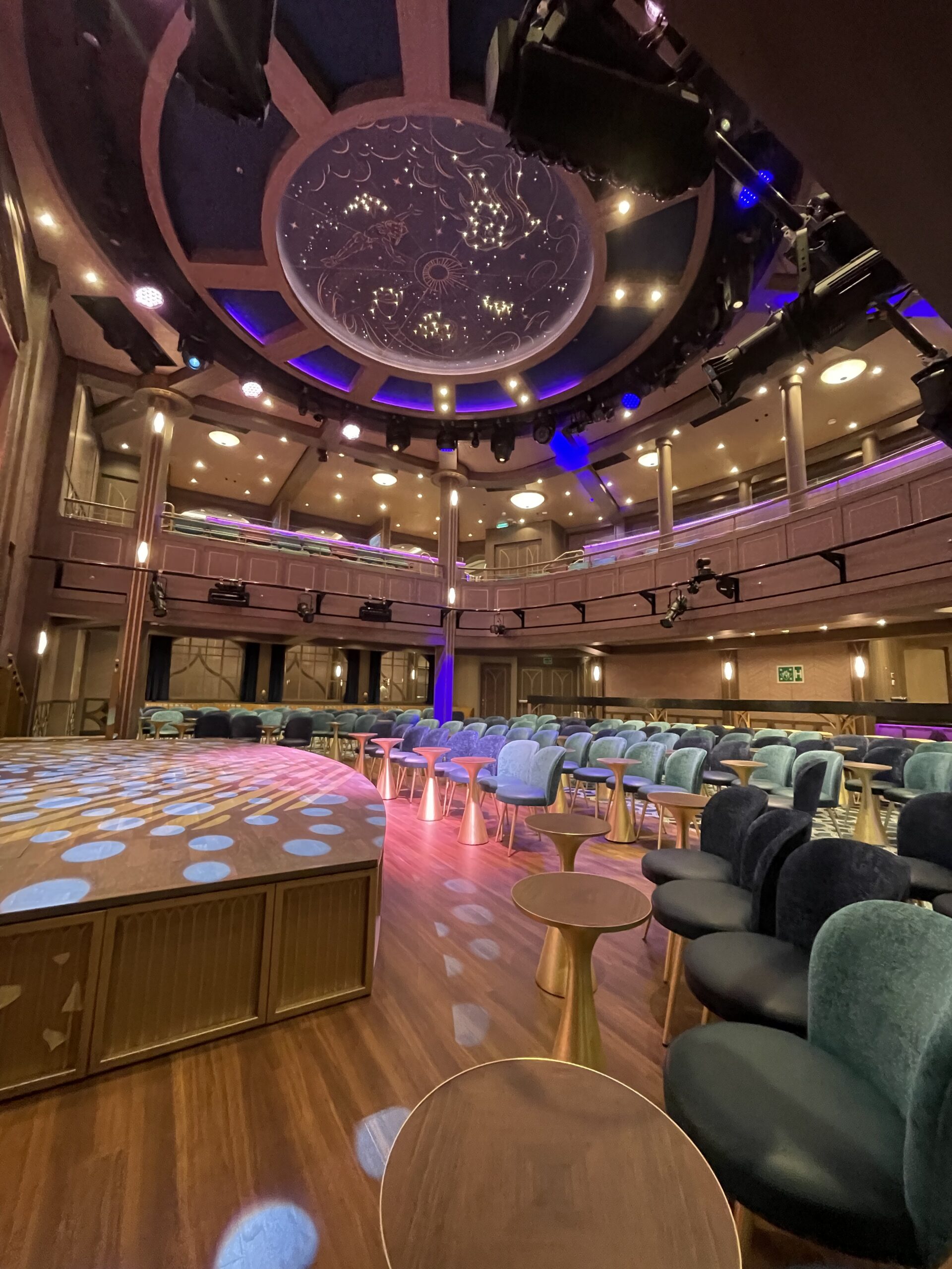 This beautiful lounge hosts the best activities! From Villains competitions, live shows, and more! It is two stories full of seating and beautifully designed around Cinderella! Make sure to check your daily navigator to see what is happening inside!