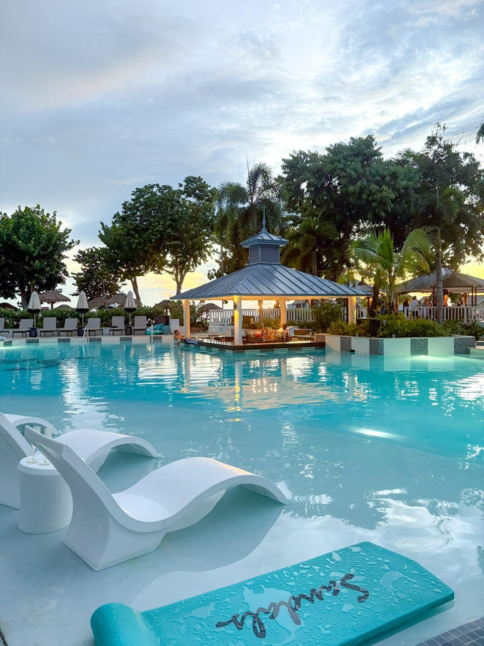 The afternoon was packed with exploration as we toured Sandals South Coast’s expansive property, including its overwater chapel, luxurious bungalows, serene Red Lane Spa, and beautiful banquet and event spaces—perfect for destination weddings and group getaways. That evening, we dined at another exquisite on-site restaurant, soaking in the vibrant flavors and island ambiance.