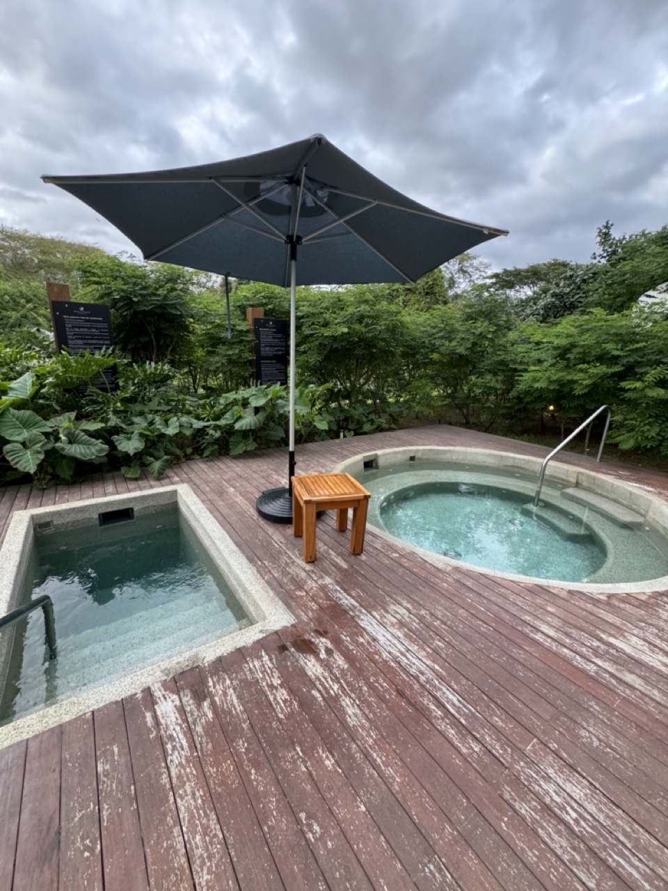 They also have a water area with a jacuzzi/cold plunge and a sauna. Pro tip: you have to go all the way under the water to really experience the cold plunge and it makes it easier for your body to adjust! In this area they also had 2 outdoor showers and complimentary water. The lounge chairs outside were very relaxing and a great place to take a breather on your vacation.