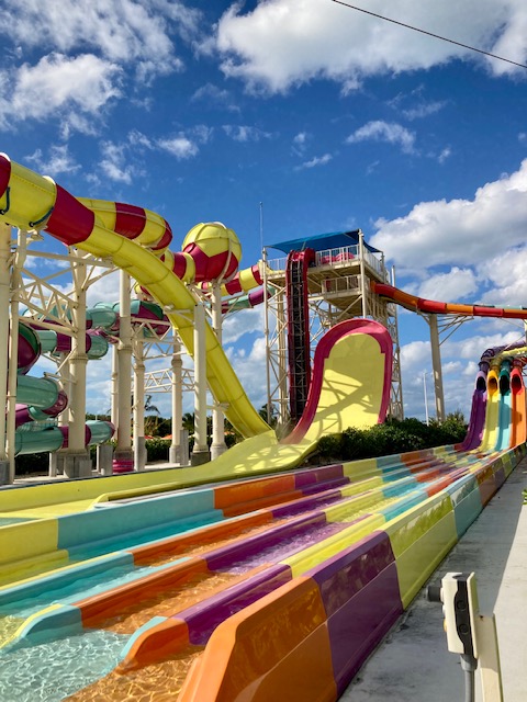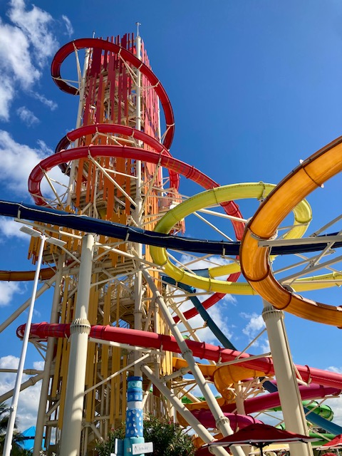 The 5 other waterslides were located at Daredevil’s Tower. You can choose from Daredevils Peak, the tallest waterslide in North America. Dueling Demons which are twin drop slides. Screeching Serpent, a 50-foot vertical slide, Green Mamba a 50-foot slide with twists and turns, and Manta Rivers, twin open flume slides. Make sure to pick up the map of Cococay. All of the slides are described as well as the thrill meter key of each.