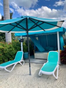 There are many options and things to do when spending your day at Perfect Day at Cococay on Royal Caribbean. I chose to spend the majority of my day at the Thrill Waterpark. You have the option of purchasing a pass to utilize the attractions within the waterpark. You can also purchase a cabana which includes access to the waterpark. I chose the cabana and shared with my friends. When entering the park tell the cabana concierge that you have a rental for the day. You are escorted to your cabana and given the appropriate wristbands.