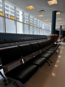 The spacious waiting area is designed to provide a comfortable and enjoyable experience for guests. With plenty of seating, ample power outlets for charging devices, and USB ports conveniently located throughout, you can stay connected and entertained while you wait. Near the seating area, several vending machines offer cold drinks and various packaged snacks. The terminal also features four modern bathrooms for guests' convenience.