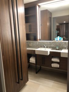 The refurbished bathrooms at this resort are a Deluxe feel at a Moderate price. Check out all of this storage! We were able to fully unpack our luggage and have plenty of room left over to store bags of souvenirs from the parks!
