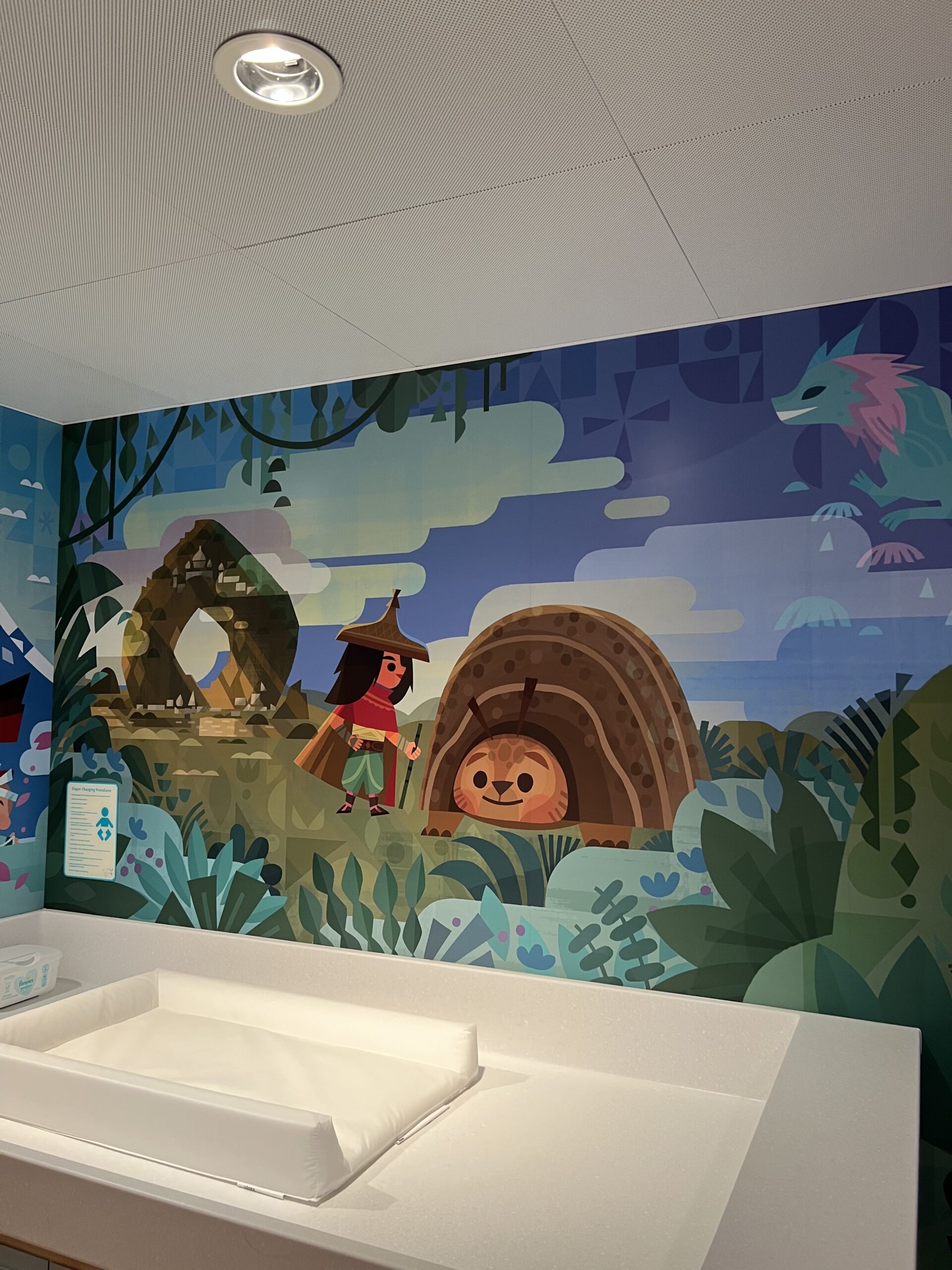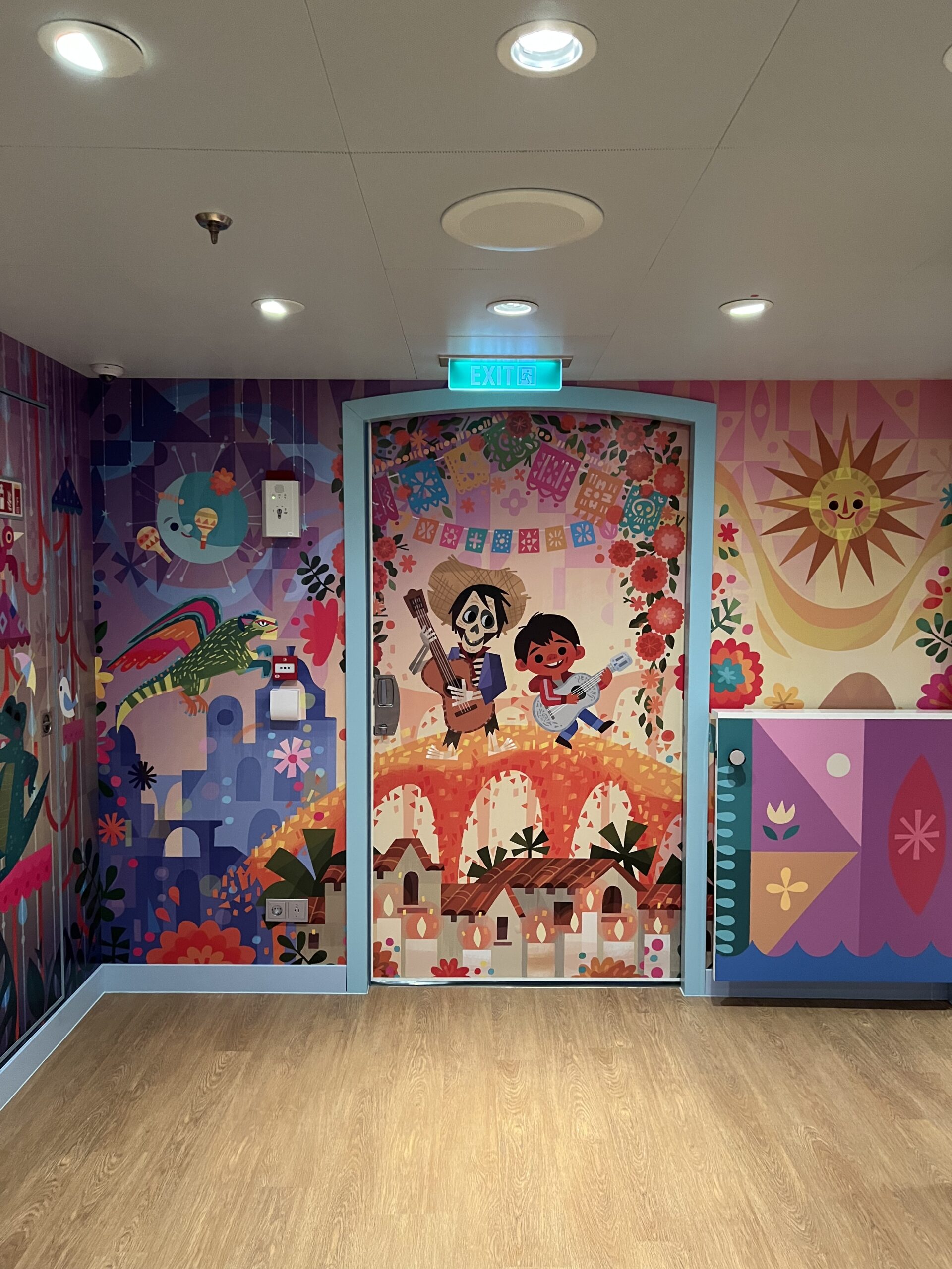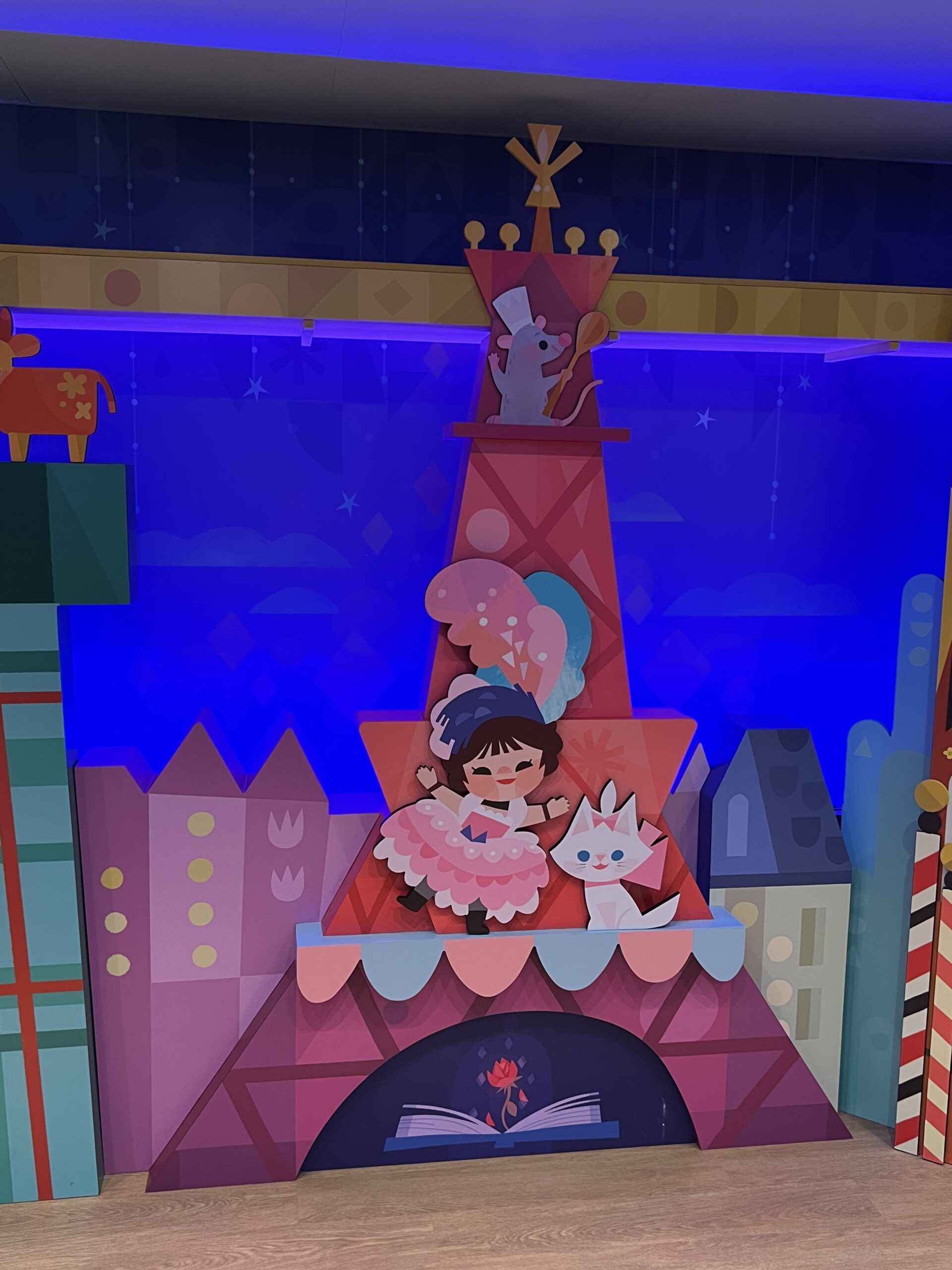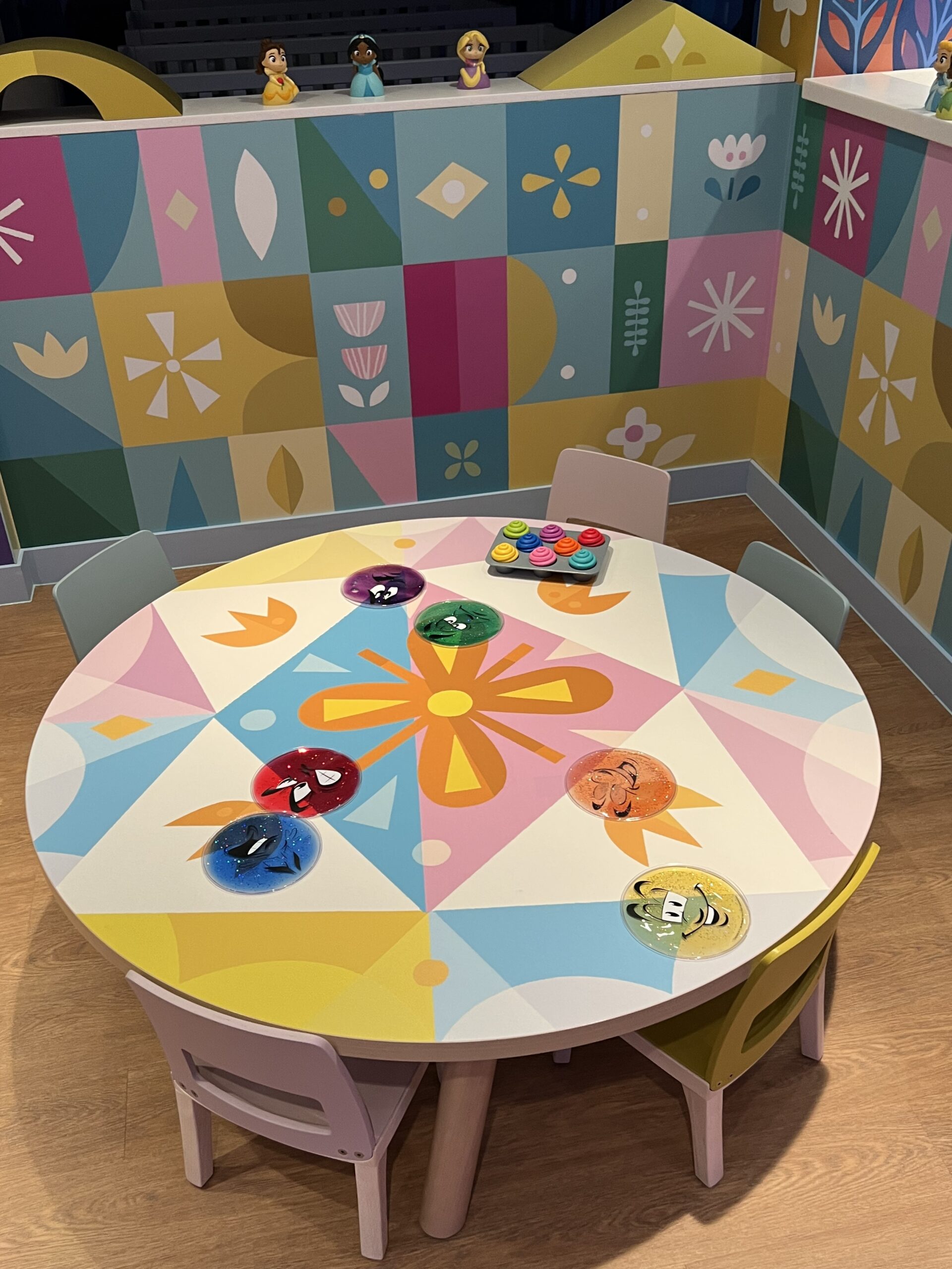 One of the very best parts of Disney Cruise Line, is getting to have some adult time at the same time as your kids are having the time of their lives in the kids club. The Small World nursery aboard The Disney Wish Is interactive, bright colors and perfect for babies! The price is $9 per hour per kid (at the time of writing this.)