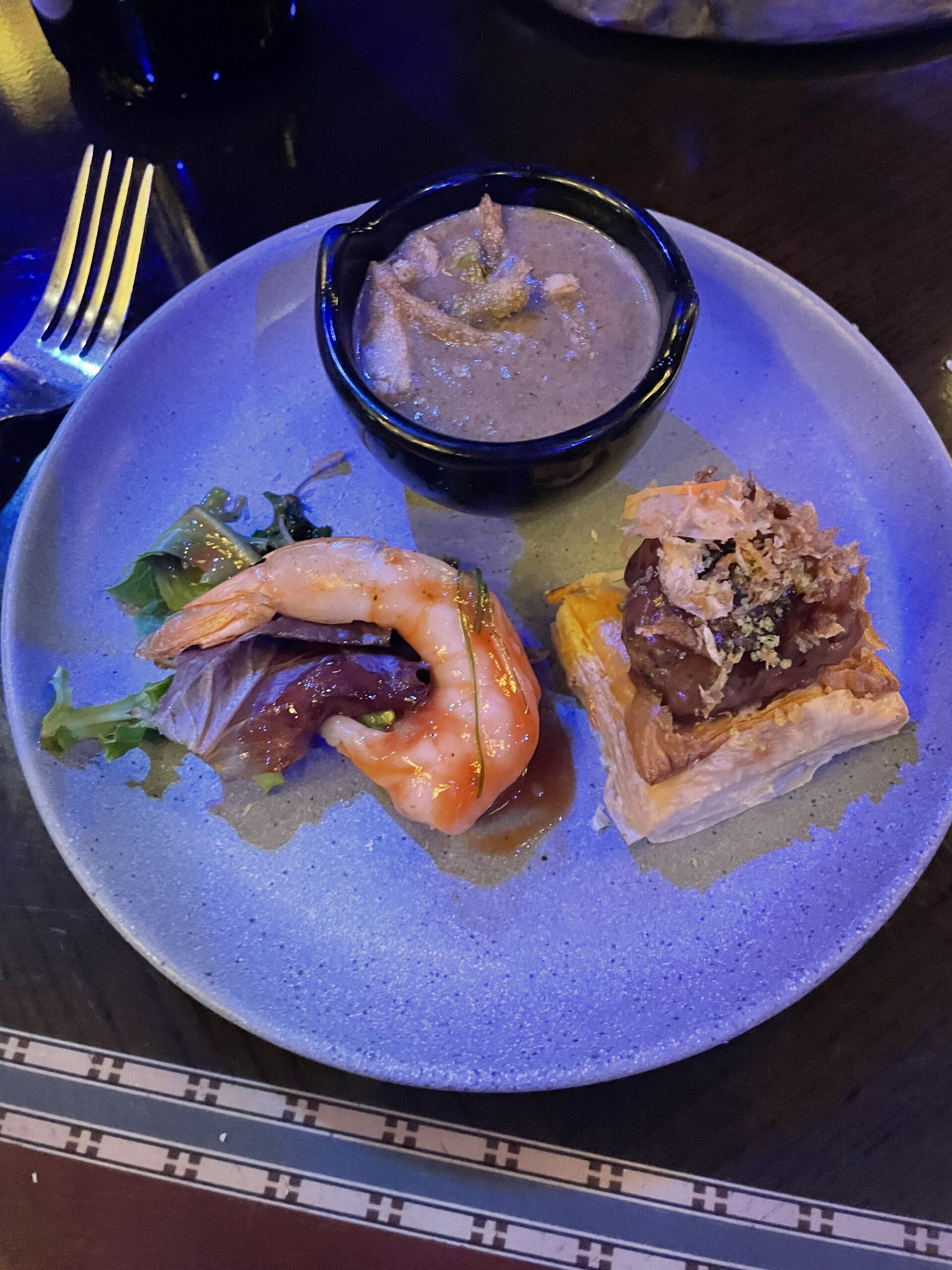 The menu at this location is beautifully themed to the fit the style of Snow White and the Seven Dwarfs. With dishes named Brother’s Grimm Herb Chicken, A Stroll through Nature, and Magic Mirror's Slow-braised Pork Shank guests are transported into the movie. The menu allows guests tastings of each appetizer, a choice from a handful of entrees and then a small serving of each dessert. The food is absolutely phenomenal and the amount is even more expensive unreal!