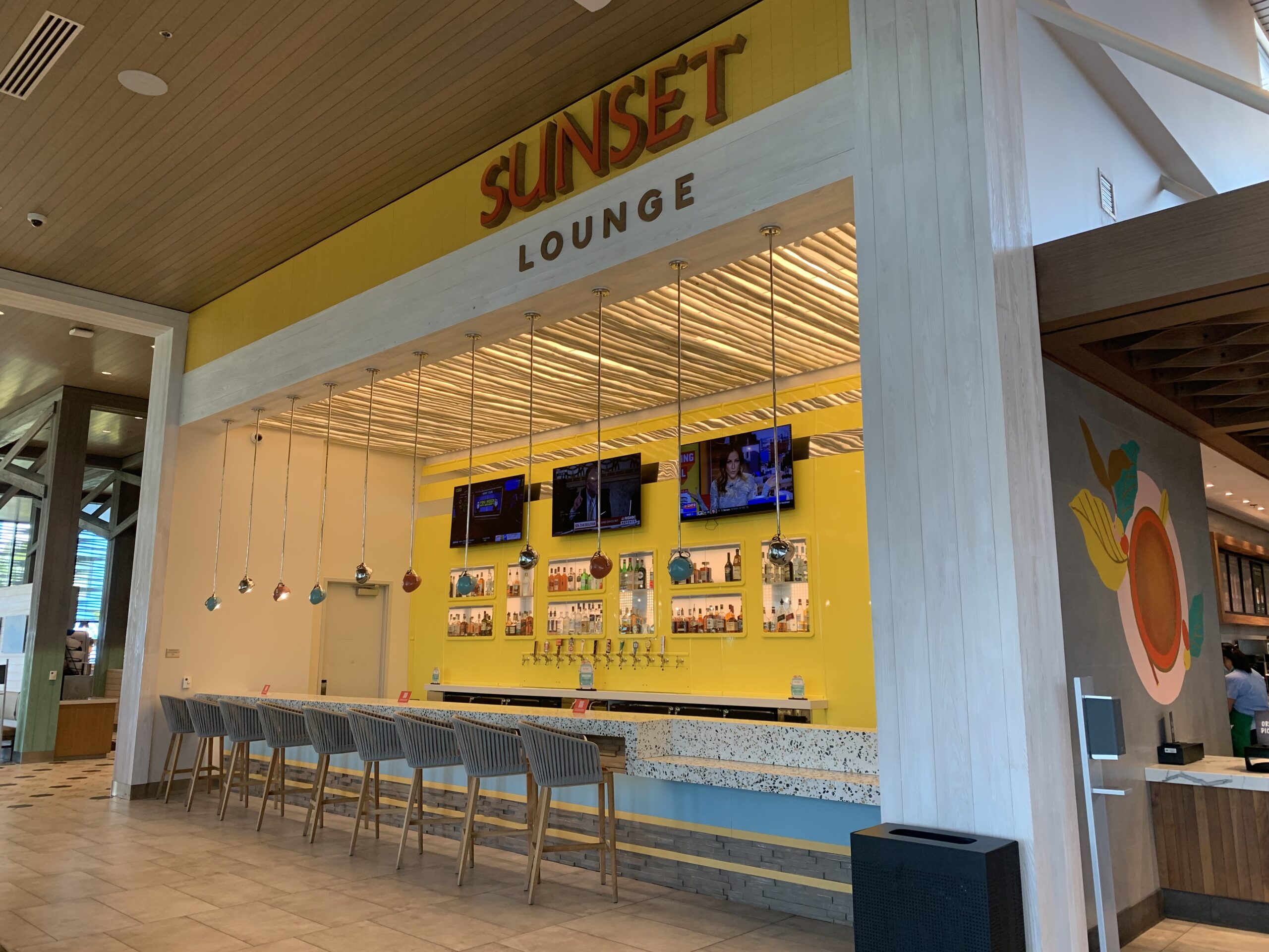 Pier 8 Market is open for breakfast, lunch, and dinner and features multiple food stations, as well as a Grab-N-Go section for those in a hurry to get to the parks. What’s even better is that the price points aren’t terrible: you can get a variety of sandwiches, wraps, and salads for under $11. Feeling more adventurous? How about some coconut shrimp from the Harbor Grille? At only $12, you can afford to be adventurous at Pier 8 Market. In my book, if you can get away without spending an arm and a leg for food at a theme park resort hotel, you’re already a step ahead! Pier 8 Market offers pizzas, which are available to be delivered to your room if you’re too exhausted from your day at the parks!