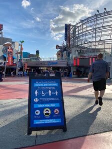 Universal CityWalk has officially reopened as of 4pm today! While it is open again, things are a little different than they were before. Hours are from 4pm-10pm and only a limited number of venues are open. Currently open venues are: Bubba Gump Shrimp co Restaurant & Market, Margaritaville ( Lone Palm & outside dining only), Red Oven Pizza Bakery (Mobile Orders only), Voodoo Doughnut, Universal Studios store, Hart & Huntington Tattoo (retail store only), select merchandise carts and Hollywood Drive-In Golf. In order to help keep guests safe, all open venues will be operating at limited capacity. This will help ensure social distancing is followed. Team members will also be continuously and thoroughly disinfecting all high touch surfaces, tables & chairs and cashless payments will be accepted at all open venues. Parking is complimentary at this time and only self parking is available. To actually get into CityWalk you will go through a temperature screening process with touchless thermometers, then move through security screening and finally down the walkway into CityWalk.