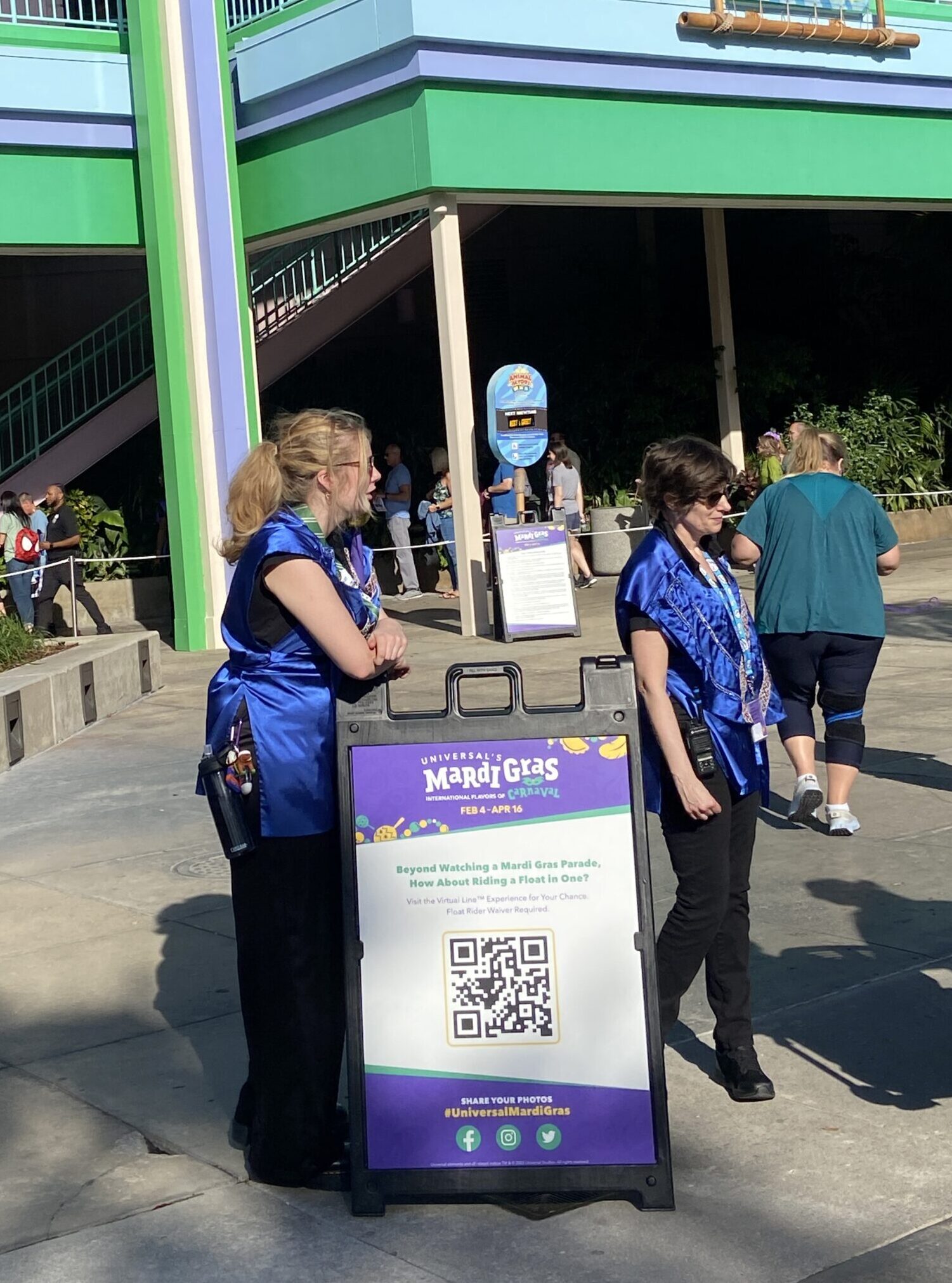 Now for the best part, as a park guest you can actually ride on the float and toss beads to everyone! Yes, you can be a part of the action. There are actually a few ways you can ride on a parade float. The first option is to be an annual passholder. Universal Orlando annual passholders have the option to reserve a spot for themselves and up to four guests to ride. Passholders are limited to just one reservation date. You can also use the Universal Orlando app. You do this the day of the parade and join the virtual line. You can do this from about 3:00 until on hour before the parade start time. Once available you will choose your party size and return time. If choosing this method you are definitely not guaranteed a spot on a float as it is subject to availability for that day.