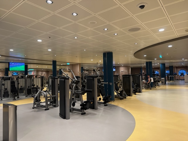 The fitness center is complimentary for cruise guests, but fitness classes such as yoga, pilates, and spinning are available for an extra cost. Each fitness class can be purchased individually once onboard, but the most cost-effective way to take advantage of group fitness classes is through a Class Pass. At the time of my sailing (Dec 2022), Class Passes for group fitness classes were offered for $39.99 for any 3 fitness classes, $69.99 for unlimited classes for 5-7 days, or $20 for a single class. There may be some complimentary fitness activities listed on the Cruise Compass, including morning stretch and Zumba.