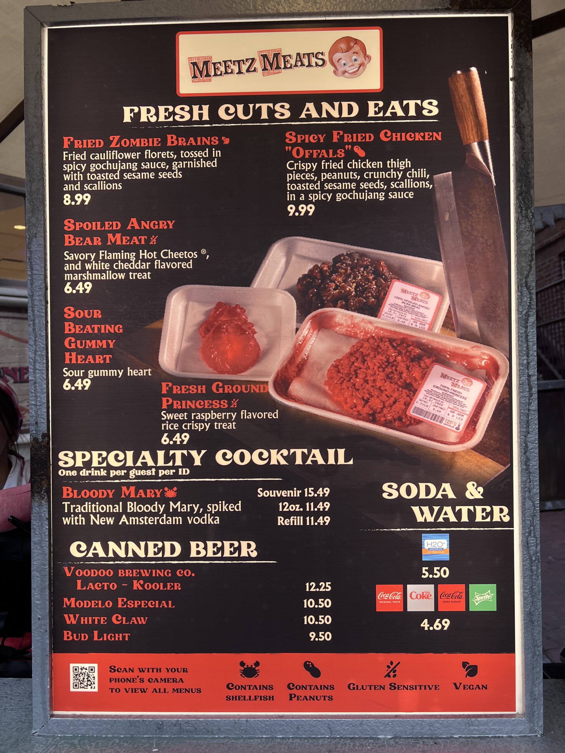 There are so many options of food and beverages at Halloween Horror Nights. My favorite themed treats were from Meetz Meats. From zombie brains to a fresh ground princess you were in for something spooky yet tasty! The best part was you could see your treat being prepared! Nothing beats a fresh ground princess, right? Guess you'll have to go to find out! Although this is a scary event, Universal will do their best to keep you safe. Therefore, a photo ID is required for any spirit purchases. (See what I did there?)