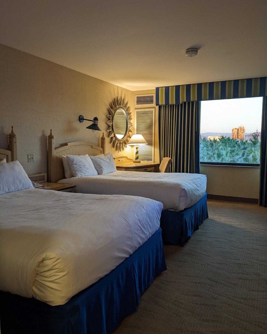 Enjoy Standard Rooms, Rooms with Club Level Service, Suites and Signature Suites at this resort. Views include those overlooking Overlooking Downtown Disney, Overlooking the Pool Area or Standard View! Extra Plus – the headboards above the bed give you a fireworks “show” to some of your favorite Disney Music.