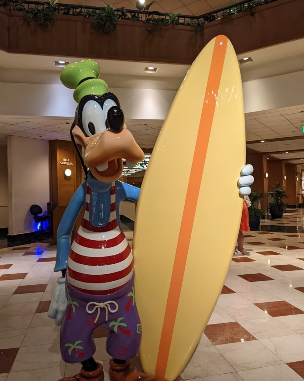 The first thing to welcome you to your resort is the beautiful lobbies! From the rustic Lodge feel of the Grand Californian, the fun seating area at the Disneyland Hotel (teacup chairs anyone?!) to Goofy getting ready to Hang 10 at the Paradise Pier Lobby!