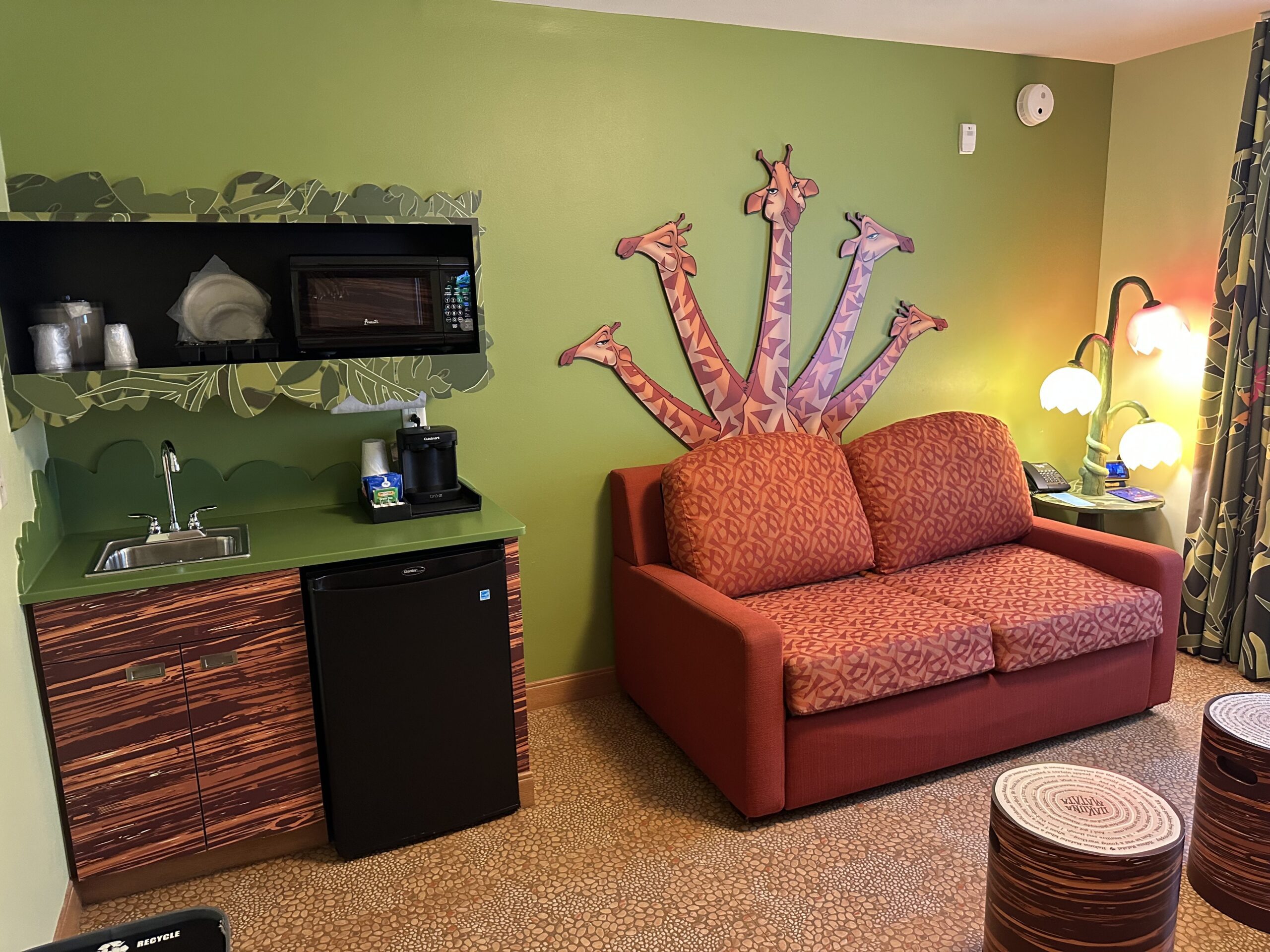 One of the biggest draws is the theming. Each Family Suite is inspired by Disney and Pixar classics like The Lion King, Finding Nemo, and Cars. The moment you walk into the suite, it feels like stepping into your favorite movie. Kids light up when they see Simba or Lightning McQueen on the walls—and let’s face it, so do adults. The Finding Nemo suites are considered preferred rooms as they are directly behind the Main Building, Animation Hall. There are two buildings that house the Nemo and Lion King Suites each and three buildings in the Cars section so you may find more availability in the Cars section. If Nemo or Lion King is your preference, you may want your travel advisor to grab that for you as soon as possible!