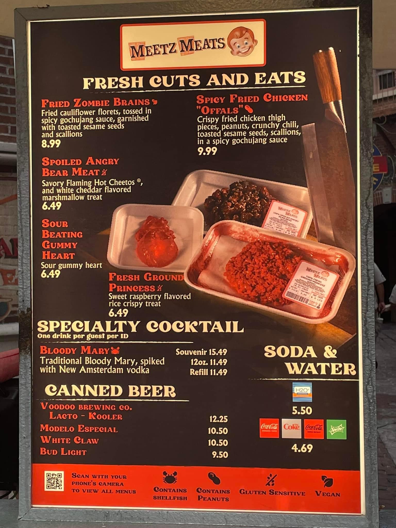 What special event would not be complete without a vast array of novelty food and beverage items? Universal’s Halloween Horror Nights is no exception especially when you see the innovative variety and options on display. HHN 31 features things like Princess Brains, Maggot Covered Cheese Dogs and Tombstone Red Velvet Cake Pops just to name a few. They also do a great job crafting specialty cocktails that appeal to every palate! The food and beverage options are exclusive to Halloween Horror Nights which means that you will not be able to try them outside of the special event at the various pop up shops around the park. If you are a foodie the specialty menus should be reason enough to check out Halloween Horror Nights!