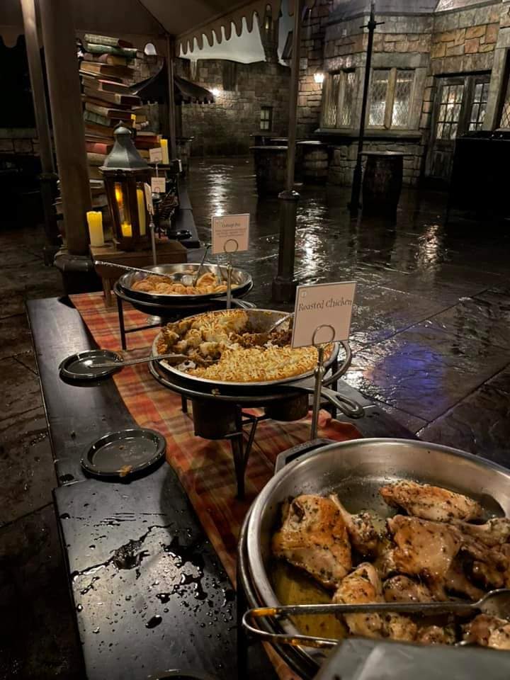 The Three Broomsticks restaurant is in the middle of the village of Hogsmeade. It is here where you can grab a bite of rustic cooking and the iconic Butterbeer. We were treated to a buffet of entrées and other foods that can be purchased at the restaurant during normal business hours. We were able to try many dishes like shepherd's ie, beef pastries, roasted chicken, grilled veggies, and so much more. Then they tempted us with scrumptious desserts, and we all loved the chocolate pudding! The Three Broomsticks is a must-try when you are visiting The Wizarding World of Harry Potter at Universal. It truly was an extraordinary night full of all things Harry Potter.
